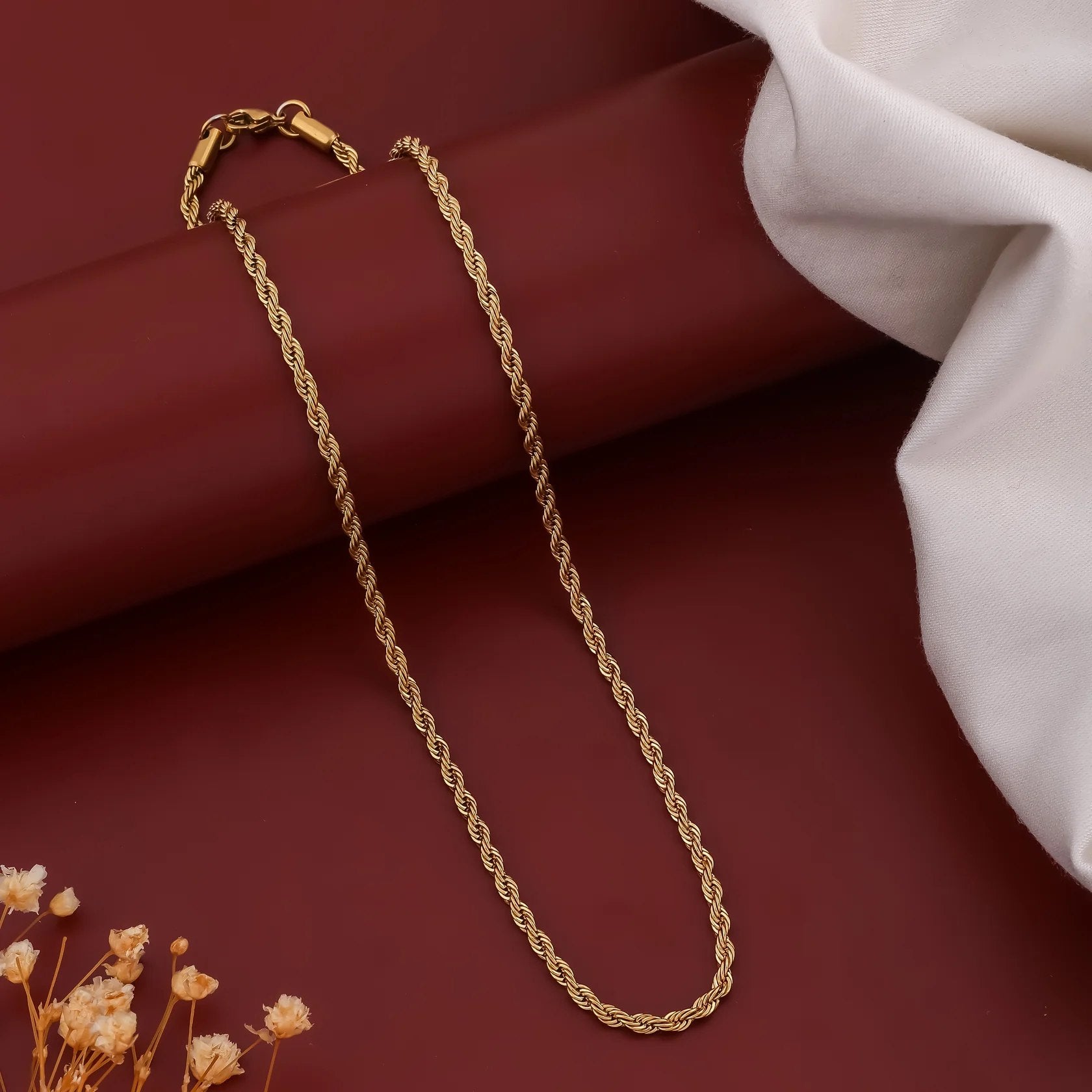 Classic Rope Chain Gold-Plated Necklace – Unisex Everyday Wear by Nivora Jewel