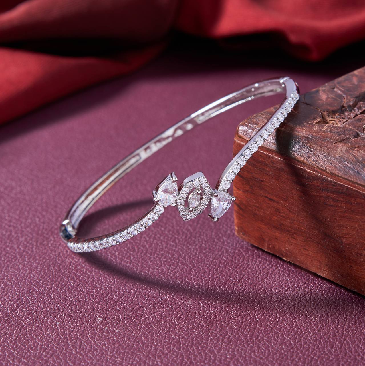 Silver Sparkle Diamond Bangle Bracelet – Elegant Party & Daily Wear by Nivora Jewel